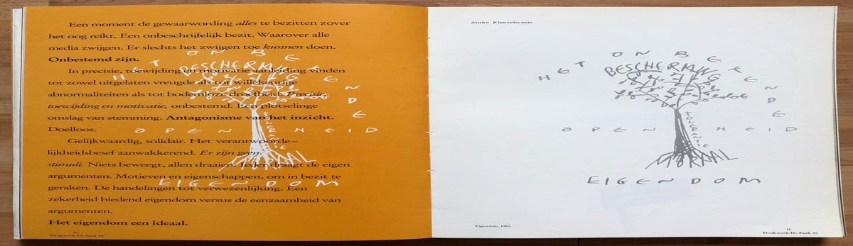 Belangrijke uitgave was Drukwerk De Zaak’, een zelfstandige presentatievorm in de beeldende kunst. Deze werd vanaf 1980 tweemaandelijks en vanaf 1982 viermaandelijks in een oplage van 750 uitgegeven. De 39 nummers werden vormgegeven door Jouke Kleerebezem en werden voorzien van originele bijdragen van tientallen kunstenaars. Drukwerk De Zaak ontwikkelde zich van een mededelingenblaadje, van een drukwerk dat op informatieve wijze het tentoonstellingsprogramma van De Zaak volgde, tot een zelfstandig medium binnen De Zaak, weliswaar gelieerd aan de tentoonstellingsruimte en op dezelfde inhoudelijke leest geschoeid, maar in hoge mate met autonome functie. Het merendeel van de zich in het Drukwerk De Zaak presenterende Nederlandse en buitenlandse kunstenaars beschouwt haar bijdragen met fraai getypografeerde kunstenaarsteksten en goed gereproduceerde fotografie als een geïntegreerd onderdeel van hun werk. Zij zagen dit tijdschrift als een zelfstandig presentatievorm en richtten zij zich op de theoretische context van de actuele kunst. Door de relatie waarin Drukwerk De Zaak tot de tentoonstellingsruimte staat onderscheid deze van de overige kunstenaarstijdschriften in Nederland als Makkom, Code en Het Bassin.