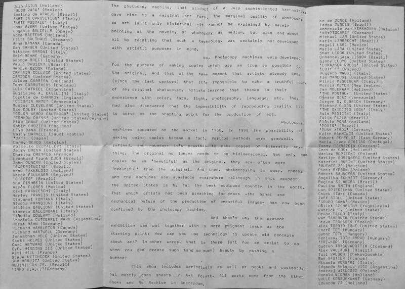 Art Photocopies Exhibition! (41 x 30 cm.), Centrum ’t Hoogt, Studium Generale, Universiteit Utrecht, 1982