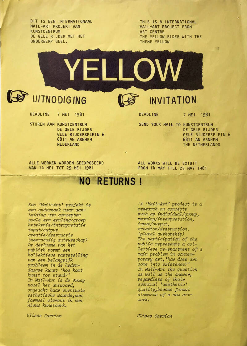 “Yellow,” Ulises Carrión’s contribution to the mail art project of the Art Centre The Yellow Rider with the Theme Yellow, Arnheim, 1981
