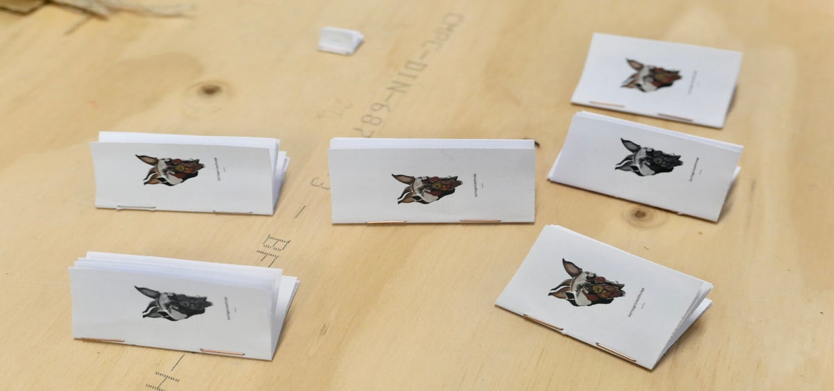 Books made from (parts of) testprints. By keeping these test prints instead of regarding them as waste these testprints become new material to work with.